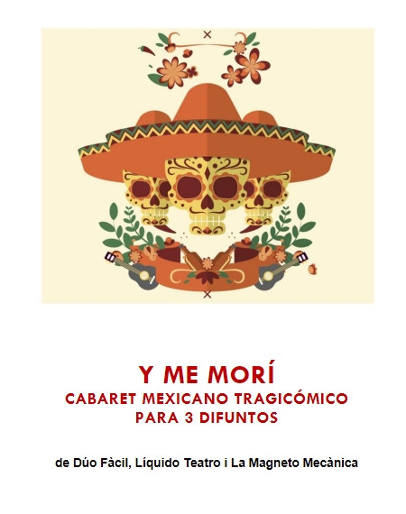 Y ME MORÍ és un espectacle inspirat per la música i els contes mexicans i les moltes expressions festives d’aquest país relacionades amb la celebració de la mort. Els nostres protagonistes ens relaten, en to de tragicomèdia, tant la mortificació que els va perseguir en vida, com la bona vida que els va rebre després de la seva mort.
