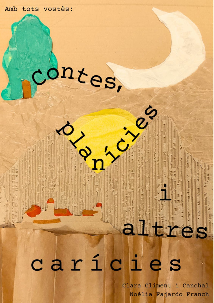 Amb una mica de notes i cartó, amb xas-xas amb trash-trash i trossos de paper-kraft, amb moltes idees al cap i alguns objectes a les mans, amb esquitx d’espessors i vespres de primavera i tardor, amb fulles de colors, xics de temor, espais de llum i de foscor, amb algunes lletres amb altres i una melodia d’amagatalls per les paraules. Massa temps han passat dins d’aquest conte gegant.