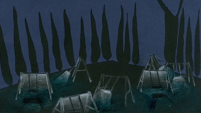 L'ESAD presenta una dramatúrgia lumínica on diversos gronxadors buits es balancegen solitaris i projecten feixos de llum. El públic, limitat per tanques i senyalitzacions, només pot observar aquesta escena espectral des d'un recorregut perimetral establert, convertint-se en testimoni passiu d'un parc fantasma.
