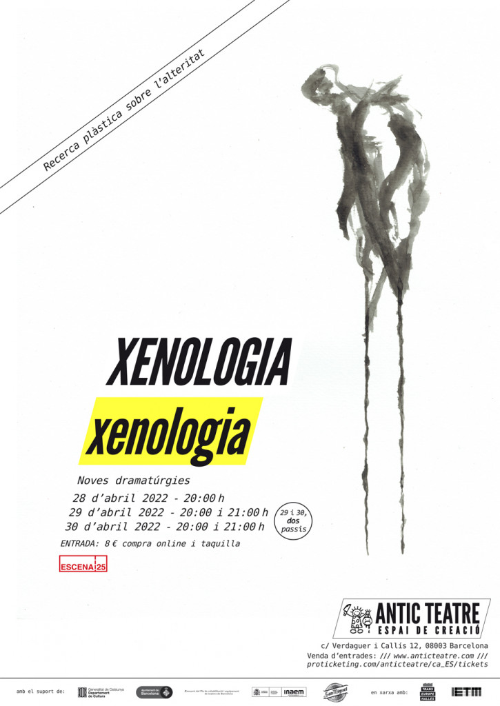 xenologia és un mossaïc d’imatges escèniques que entreçacen cos, so i llum. Mitjançant una atmosfera plàstica, vol interrogar-se entorn de com viure junts.