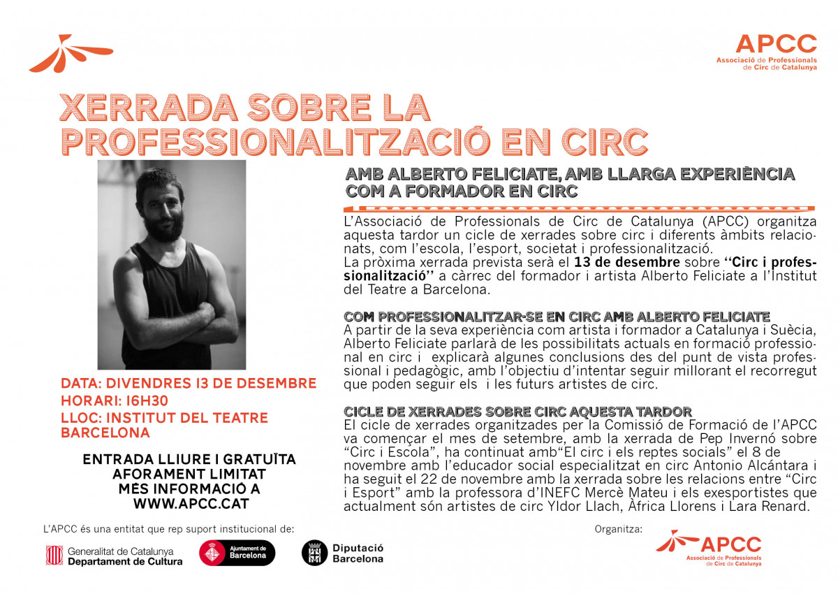 Xerrada organitzada per l'Associació de Professionals de Circ de Catalunya amb Alberto Feliciate, amb llarga experiència com a formador en circ.