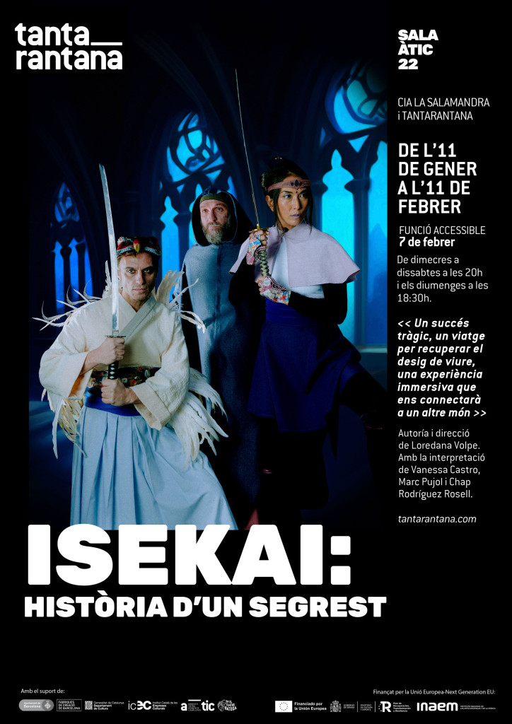 Un espectacle amb tecnologies immersives on el públic estarà envoltat per tres pantalles que recreen la realitat virtual d’un videojoc de gènere isekai (“isekai” és una paraula japonesa que vol dir “una altra dimensió”), de manera que el públic podrà fer un viatge entre mons juntament amb els personatges i els seus avatars en una altra realitat.