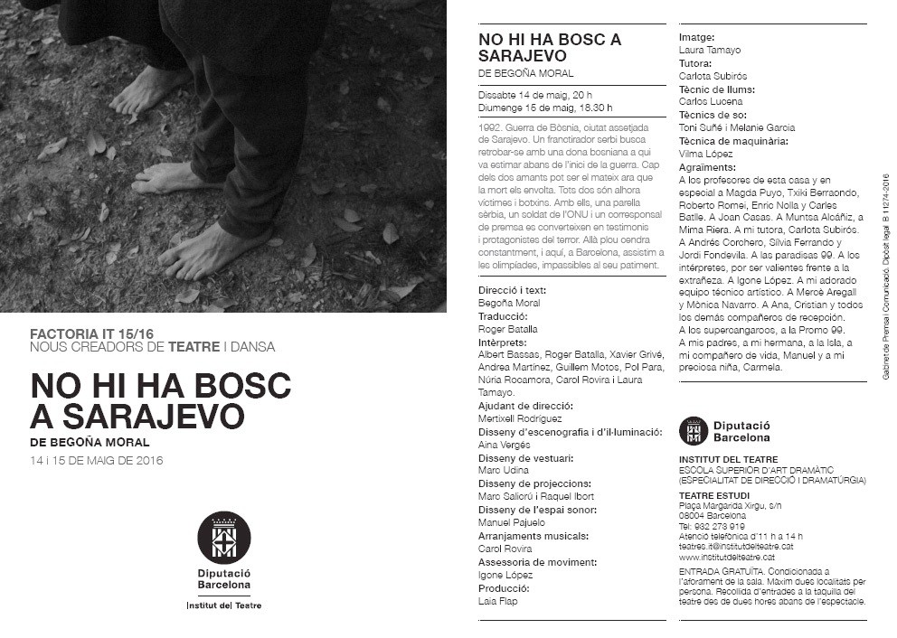 Els propers dissabte 14 i diumenge 15 de maig, Begoña Moral, alumna de 4rt de direcció i dramatúrgia de l'ESAD, presenta No hi ha bosc a Sarajevo.