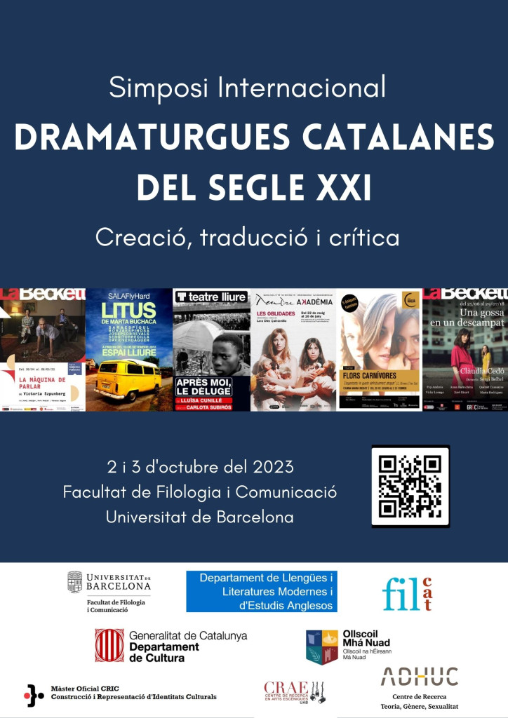 Aquest simposi, que se celebrarà els dies 2 i 3 d'octubre de 2023, pretén proporcionar un espai de debat entorn de la dramatúrgia catalana contemporània d'autoria femenina. El simposi reunirà professorat, dramaturgues i crítica teatral per pensar, debatre i transmetre la recerca en curs sobre la dramatúrgia catalana del segle XXI.
