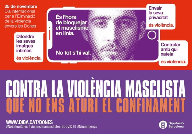 El text, posa en relleu com el confinament causat pel coronavirus ha demostrat que, qui volia exercir el control sobre dones i nenes ho ha tingut més fàcil que mai. Per això la Diputació de Barcelona posa en marxa la campanya “Contra la violència masclista que no ens aturi el confinament”, per posar en relleu que moltes dones, i els seus fills i filles, s’han vist obligades a conviure amb el seu agressor 24 hores al dia, alhora que els serveis d'atenció especialitzada han hagut de reconfigurar els seus serveis per poder donar resposta a aquesta situació d’excepcionalitat.