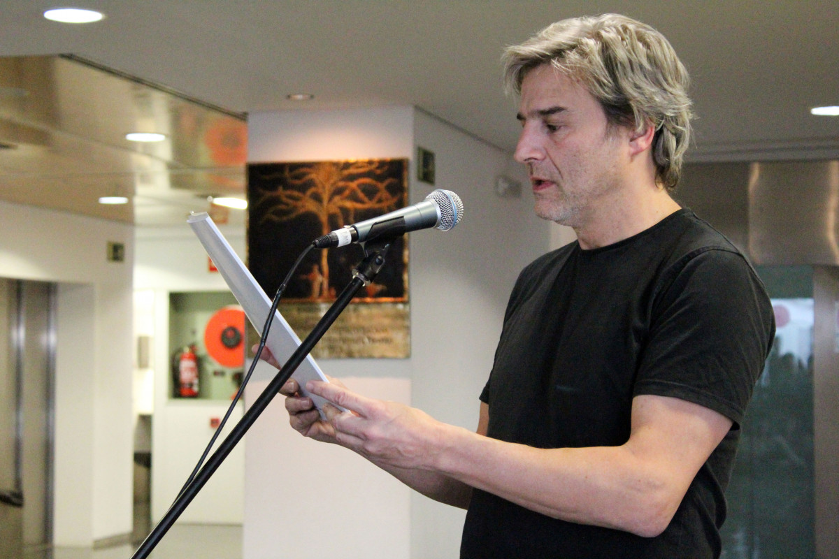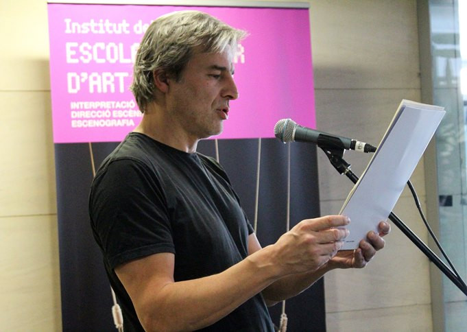 El dramaturg, actor, director de Teatro de Barrio i activista cultural, Alberto San Juan, ha llegit aquest dijous 22 de març, al vestíbul de l’Institut del Teatre el missatge amb motiu del Dia Mundial del Teatre. Amb aquesta lectura, un any més, des de l’Institut del Teatre ens sumem a la multitud d’institucions, sales d’exhibició i professionals del sector a nivell internacional que commemoren el Dia Mundial del Teatre, esdeveniment que se celebra anualment el 27 de març, i que aquest any, donat que és un dia festiu en el calendari acadèmic, hem avançat lleugerament per celebrar-lo conjuntament amb els alumnes i professorat de totes les escoles del centre, i en especial, amb els de l'Escola Superior d'Art Dramàtic (ESAD).