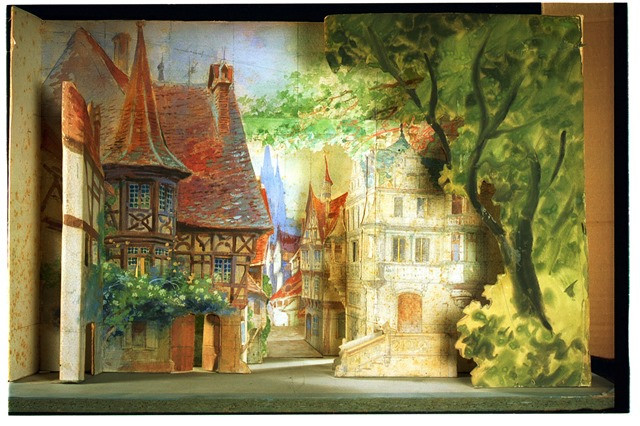 El teatrí es l’escenografia del 2n acte de l’òpera Els mestres cantaires de Nuremberg de Richard Wagner, que es va estrenar al Gran Teatre del Liceu l’any 1905. Representa una cruïlla de carrers de Nuremberg, amb les cases del sabater Sachs a l'esquerra i el ric Pogner a la dreta. L’acció passa al segle XVII.