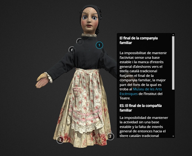 El Museu de les Arts Escèniques (MAE) de l’Institut del Teatre posa a la vostra disposició una nova manera de veure la col·lecció de titelles a partir de les noves tecnologies de captació 3D. L’objectiu és fer més accessible el patrimoni escènic, apropant-nos a cada peça de forma més dinàmica i realista.