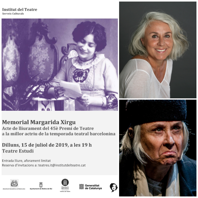 El Premi de Teatre Memorial Margarida Xirgu l’atorga l’Associació ADB (Associació Dramàtica de Barcelona) amb el suport de l’Ajuntament de Molins de Rei, l’Institut del Teatre de Barcelona i la Federació de Grups Amateurs de Teatre de Catalunya.