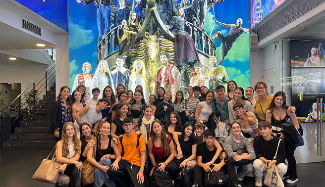 El treball a l’aula s’ha complementat aquest dimecres 16 d’octubre amb la visita a l’Institut del Teatre de la graduada en teatre musical a l’ESAD i graduada en dansa espanyola al CPD, Candela Díaz, qui forma part de l’elenc d’artistes que interpreten «Mar i cel» aquests dies al Teatre Victòria.