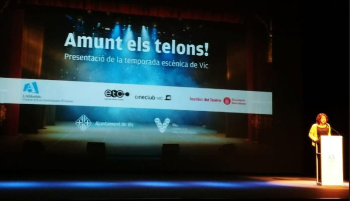 El Centre territorial d’Osona de l’Institut del Teatre contribueix, un any més, a engreixar l’oferta cultural de la ciutat de Vic en la nova temporada escènica que tot just comença, i que es va presentar el dissabte 29 de setembre en la gala «Amunt els telons!», celebrada a L’Atlàntida de Vic. En l’esdeveniment, un acte impulsat per la regidoria de Cultura de l’Ajuntament de Vic, es va presentar, per primera vegada i de manera conjunta, la programació del proper semestre dels tres equipaments escènics públics del municipi: L’Atlàntida, l’ETC (Espai de Teatre i Cinema) i l’Institut del Teatre.