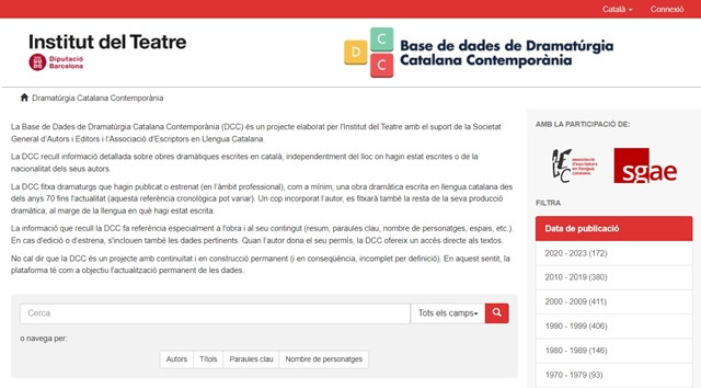 La base de dades de Dramatúrgia Catalana Contemporània (DCC) és un projecte elaborat per l'Institut del Teatre, amb el suport de la Societat General d’Autors i Editors (SGAE) i l’Associació d’Escriptors en Llengua Catalana (AELC), que recull informació detallada sobre obres dramàtiques escrites en català, independentment del lloc on hagin estat escrites o de la nacionalitat dels seus autors. La base està en construcció permanent i acull informació de més de 2.000 obres dramàtiques de 400 autors, les més antigues de la dècada dels 60.