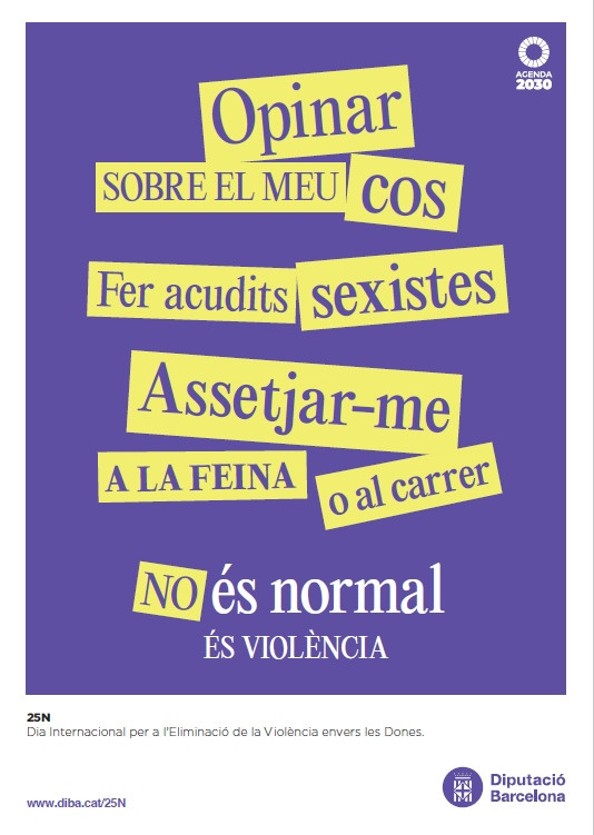 En aquesta ocasió Diputació de Barcelona posa en marxa la campanya “No es normal, és violència”. Aquesta activitat és una de les accions de sensibilització i de rebuig a les violències masclistes programades en la campanya d’enguany i està oberta a tot el personal de la corporació.