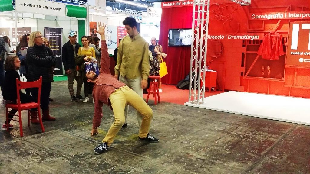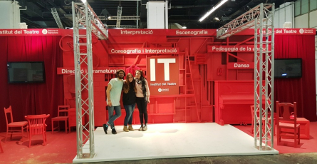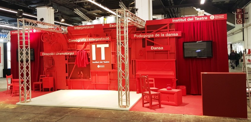 L'estand dels estudis d'art dramàtic i de dansa ha estat dissenyat per alumnes de l'especialitat d'Escenografia de l'Escola Superior d'Art Dramàtic (ESAD) Els estudiants han creat un espai evocador de l'univers escènic, que inclou un escenari per acollir les actuacions dels alumnes. A l'estand es facilitarà informació sobre totes les especialitats que s'imparteixen a les escoles de l'Institut del Teatre: Interpretació, Escenografia, Direcció i dramatúrgia, Coreografia, Pedagogia de la dansa i dansa clàssica, contemporània i espanyola.