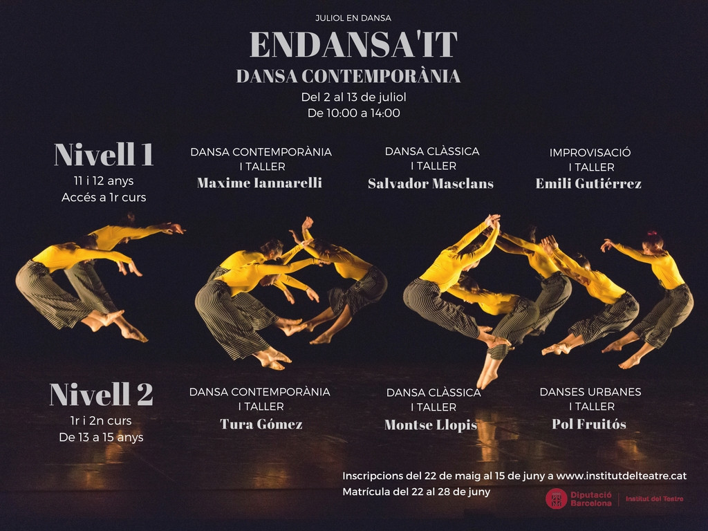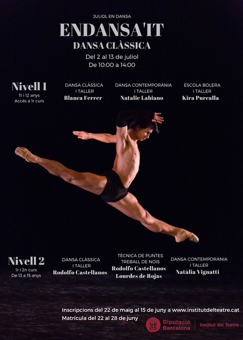 El Conservatori Professional de Dansa (CPD) ofereix per tercer any el curs d’estiu ENDANSA’IT per a les tres especialitats de dansa (Clàssica, Contemporània i Espanyola).