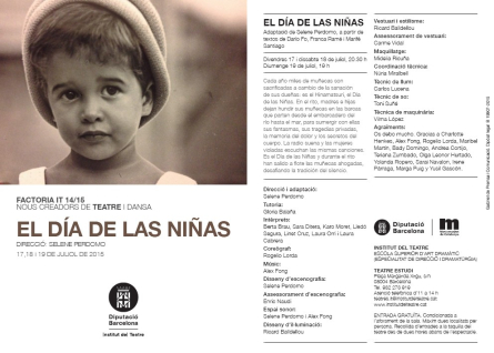 Els proper divendres 17 de juliol, Selene Perdomo, alumna de 4rt de direcció de l'ESAD, presenta El día de las niñas, adaptació de Selene Perdomo, a partir de textos de Darío Fo, Franca Ramé i Marifé Santiago.
