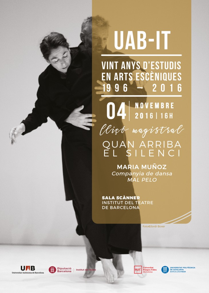Amb motiu dels 20 anys dels estudis en arts escèniques, la Universitat Autònoma de Barcelona i l'Institut del Teatre ofereixen la lliçó magistral "Quan arriba el silenci" a càrrec de Maria Muñoz de la companyia de dansa Mal Pelo.