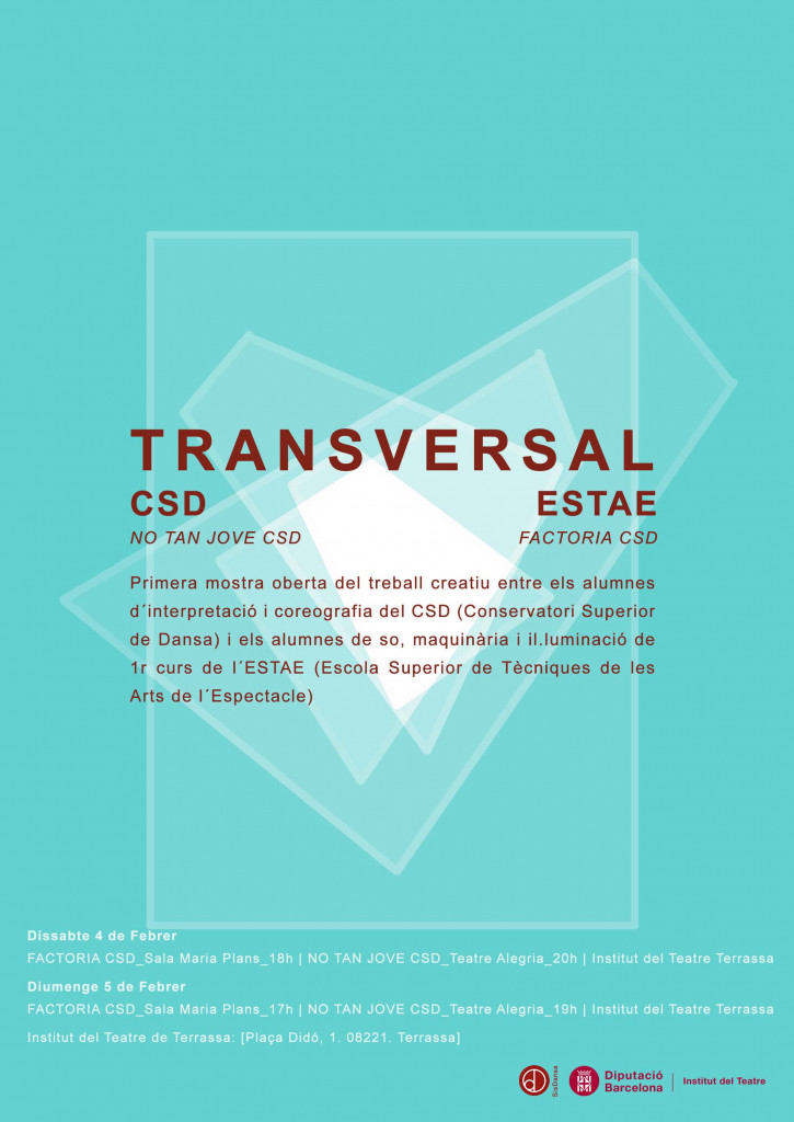 Projecte de col·laboració pràctica del Conservatori Superior de Dansa i l’Escola Superior de Tècniques de les Arts de l’Espectacle que tindrà lloc al Teatre Alegria i a la Sala Maria Plans de Terrassa, els dies 4 i 5 de febrer del 2017 en horari tarda/nit.