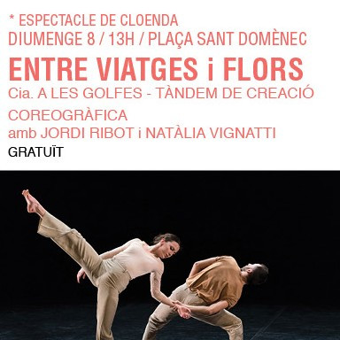 Entre viatges i flors és un espectacle que suma dansa i text partint d’alguns contes del recull Viatges i flors de Mercè Rodoreda. Les imatges que els textos evoquen es llegeixen com un torrent d’aigua, ara més calmat —construint un paisatge amb cura—, ara més ràpid i directe —establint una imatge que passa fugaç i prou. La peça cerca connexions entre aquestes imatges i la inherent ambigüitat significativa de la dansa amb la intenció de crear un univers poètic particular, entre la literalitat i l’abstracció, que respecti el color melancòlic que es desprèn dels textos seleccionats, tenyits de tristesa per l’absurd de la guerra. Espectacle finalista del Premi de dansa de l’Institut del Teatre 2017.
