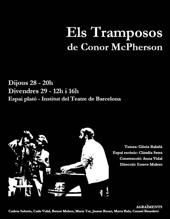 Pràctiques d'escenificació de 3r de l'alumne de direcció i dramatúrgia Esteve Mulero, amb «Els Tramposos», de Conor McPherson.