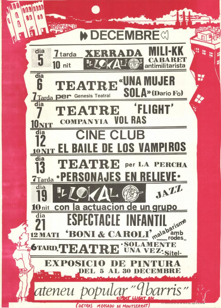 ActivitatAteneu sociocultural i artístic que entén la cultura com una eina de transformació social i fomenta valors com el civisme, la cooperació i el creixement personal i col·lectiu. És un centre independent i autogestionari basat en la democràcia participativa. Les directrius programàtiques i l'organització general són responsabilitat de Bidó de Nou Barris, entitat sense ànim de lucre que funciona mitjançant diferents comissions de treball obertes a tothom i amb una junta nomenada per l'assemblea de socis.