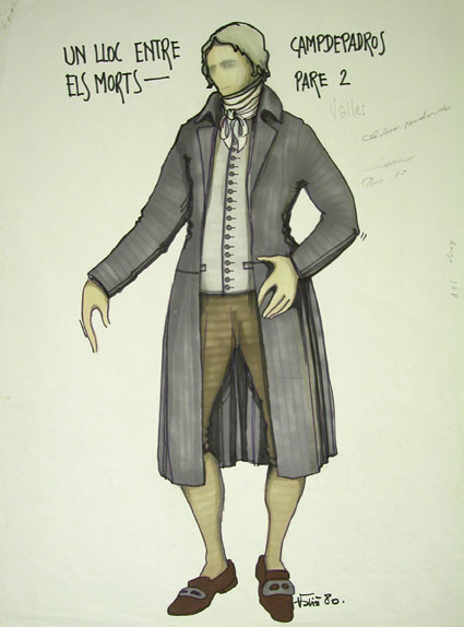 Fonts iconogràfiquesFotografia 1: Jeroni Campdepadrós. Figurí de Fabià Puigserver per a l'estrena de 1980. © Fabià Puigserver. MAE, Institut del Teatre.