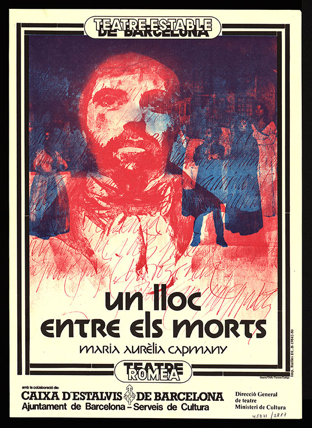 Fotografia 3: Coberta del programa de mà, de Cesc Espluga, per al muntatge d'Un lloc entre els morts el 1980 al Teatre Romea. Impremta Ratlles. © Cesc Espluga. MAE, Institut del Teatre.